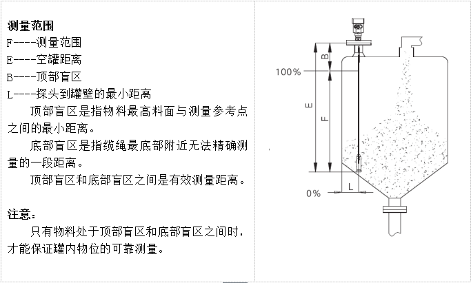 通過輸入空罐高度E(=零點(diǎn)),滿罐高度F(=滿量程)及一些應(yīng)用參數(shù)來設(shè)定,應(yīng)用參數(shù)將自動使儀表適應(yīng)測量環(huán)境。對應(yīng)于4-20mA輸出。